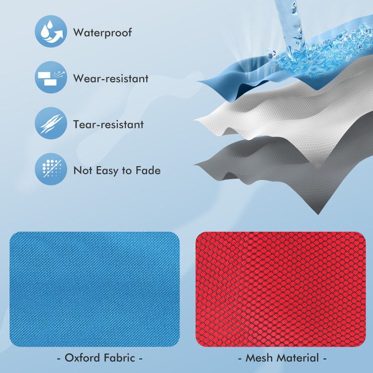 Each camping table features a large storage sink and several side storage bagsCan be used as outdoor water basins; storage baskets; ice buckets and kids game tablesLarge capacity fabric basin can support a weight up to 55 lbsIdeal for camping; hiking; fishing; picnic; outdoor party; etcWaterproof oxford fabric; breathable mesh and solid MDF for long-lasting service lifeFolding structure and portable bag for easy carrying and convenient storageRust-resistant steel frame; X-shaped design and anti-skid feet for utmost stabilityClear user manual and all needed accessories for easy assembly