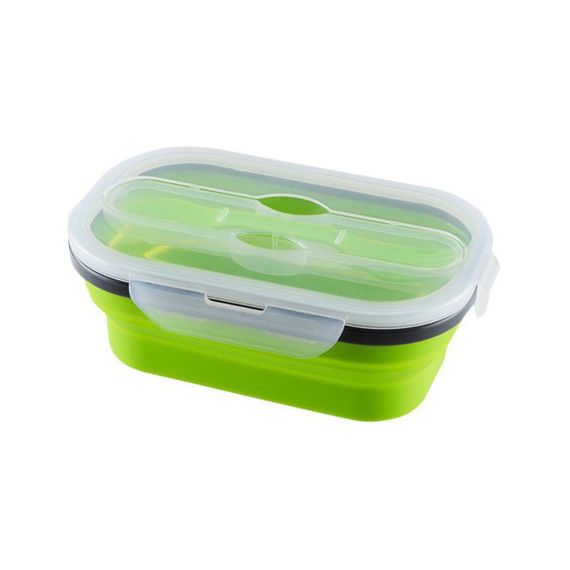 Home > Lunch Box Collapsible Silicone Food Storage with Fork Spoon Expandable Eco Lunch Bento Box BPA-Free Dishwasher Freezer Microwave Safe